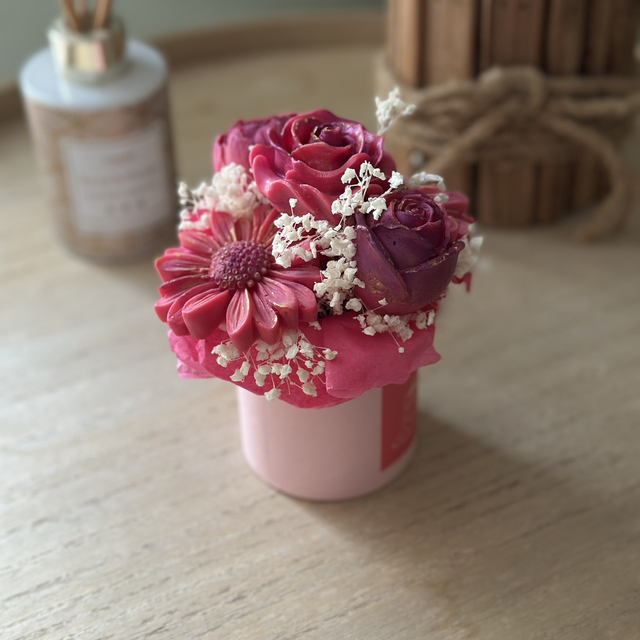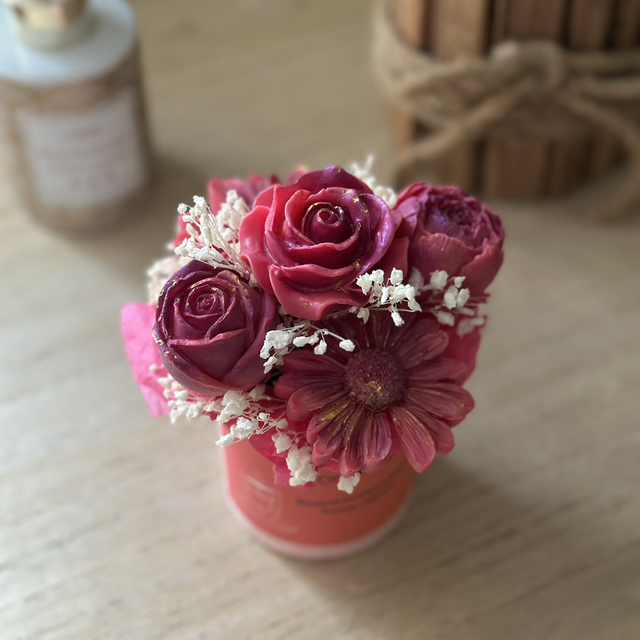 Chaques fleurs est coulé à la main à partir de cire de soja et de fragrances de Grasse, chaque bouquet diffuse un parfum sucré et réconfortant qui évoque la fête foraine et les douceurs d’enfance.