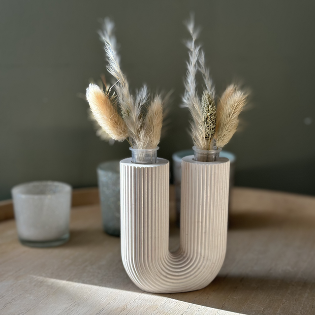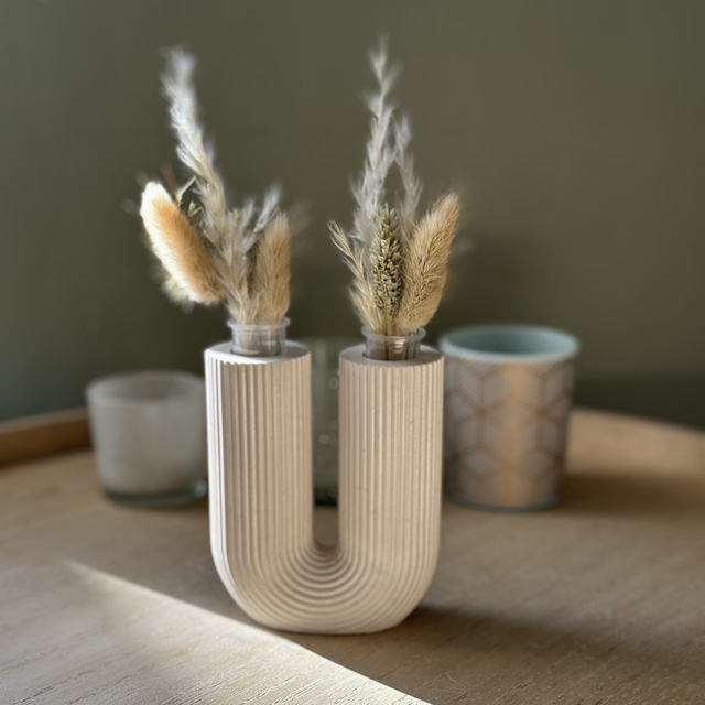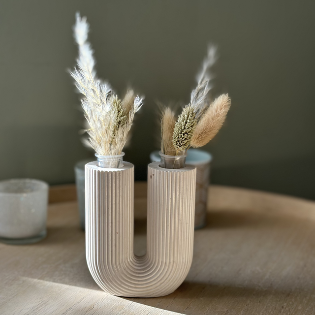 Soliflore Ursula, une pièce décorative au design en U qui met en valeur vos tiges séchées avec élégance. Sa forme double offre un équilibre moderne et sculptural, idéal pour sublimer une étagère, une table basse ou un coin de console. Léger, épuré et disponible en plusieurs coloris, il apporte une touche contemporaine à votre intérieur tout en restant intemporel